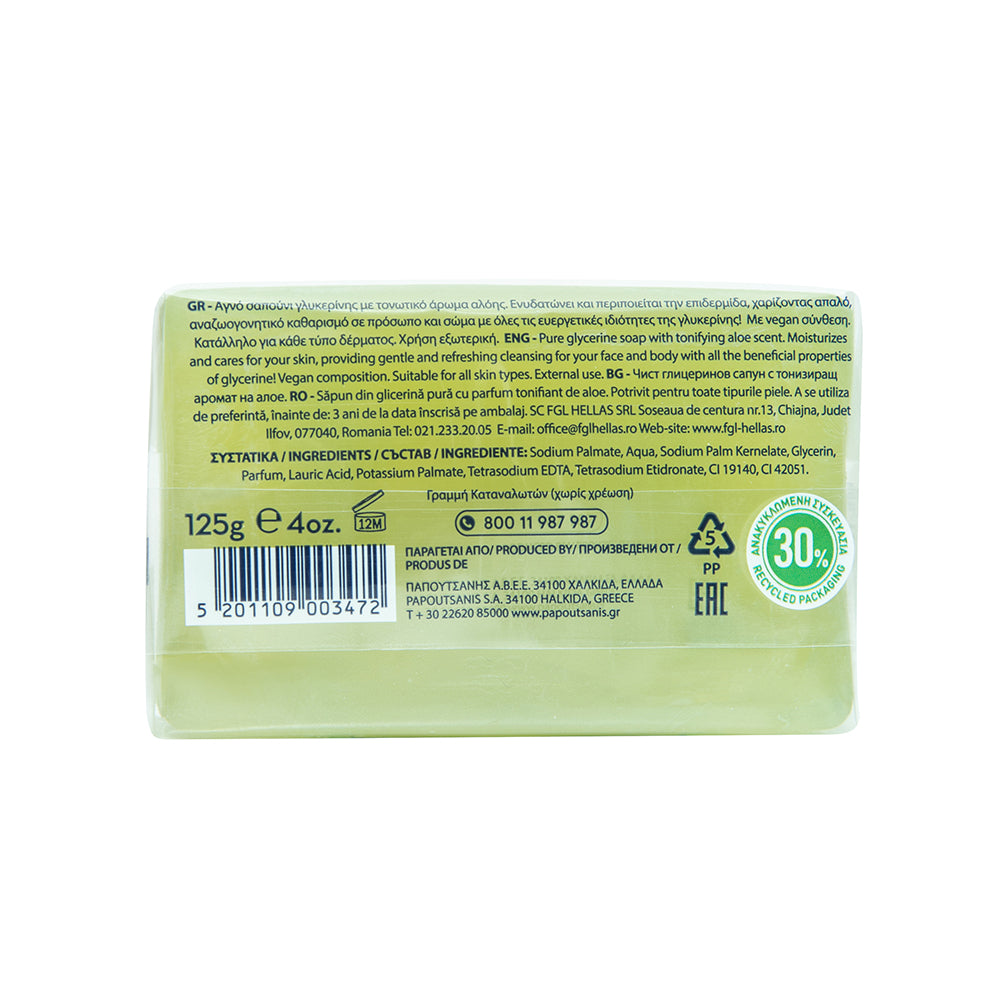Papoutsanis Pure Glycerine Soap with Tonifying Aloe Scent