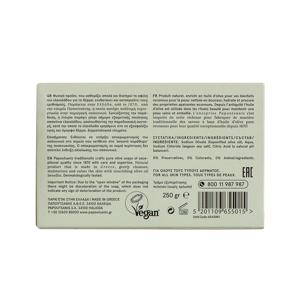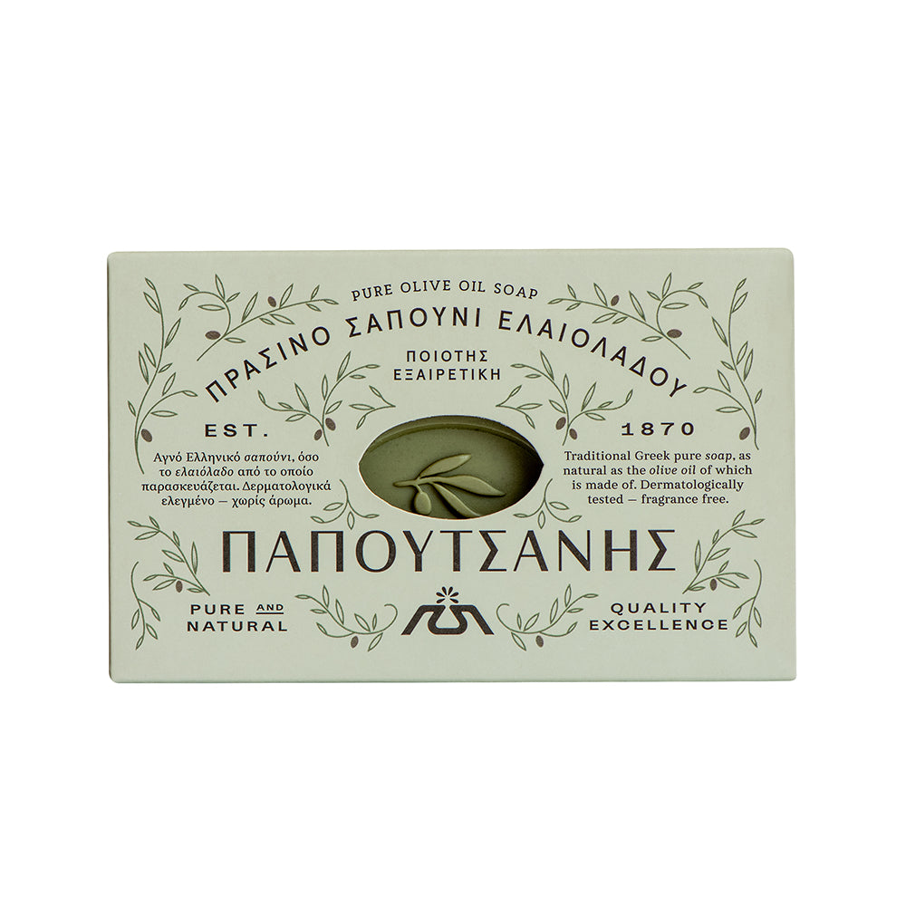 Nourish your skin the way nature intended. Crafted from pure Greek olive oil, this time-honored soap by Papoutsanis has gently cleansed and cared for face, body, and hair for over 150 years. Rich in natural antioxidants and moisturizing properties, it's the ultimate multi-use bar for soft, healthy skin.