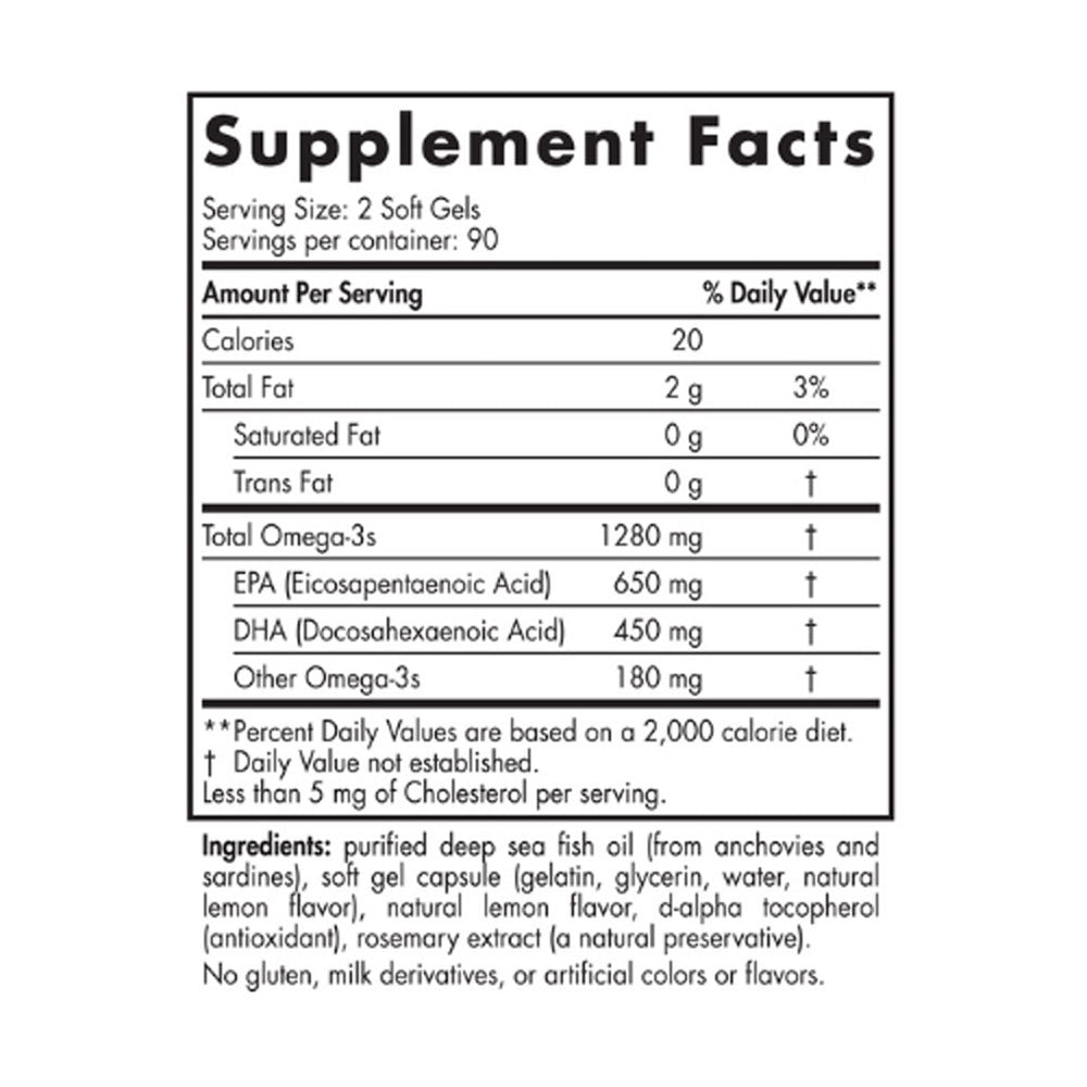 - Double-strength EPA+DHA for increased omega-3 benefits in fewer soft gels